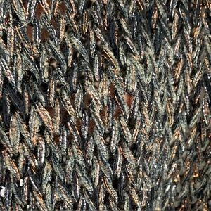 Metallic threading throughout shades of blue grey copper with a tan zipper.