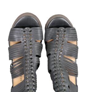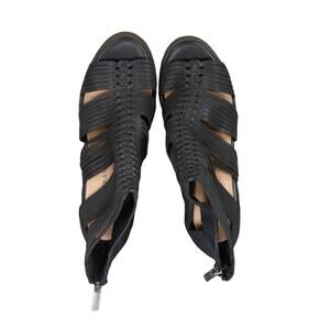 Used Lucky Brand Shoes Womens 7 Sandal Bootie Block Heel Open Toe Leather Zip Black