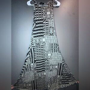 π€ Black & White Dress β Tribal geometric print with subtle texture.