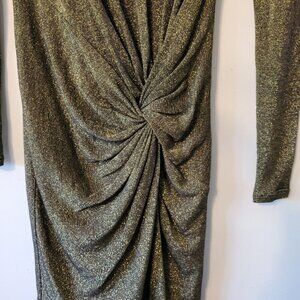 Ted Baker London Black and Gold Metallic Dress with Gathered Knot Size 0