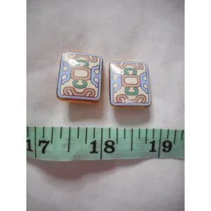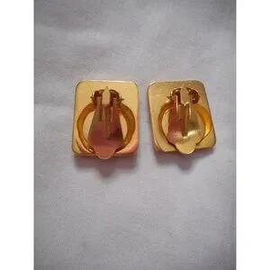 Vintage 1980s clip on earrings Multicolor ethnic look costume jewelry Aztec