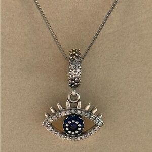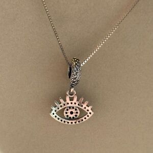 Elevate your jewelry collection with this stunning 925 Sterling Silver CZ Hamsa Evil All Seeing Eye Pendant & Chain. The pendant features an eye shape with a lobster clasp and is stackable with other charms. The necklace is 20 inches long and has a sterling silver chain type.