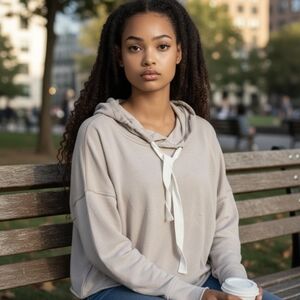 Betsey Johnson Oatmeal Hoodie French Terry Casual Neutral Rolled Edge Sz M