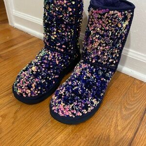 SALE! UGG CLASSIC SHORT STELLAR SEQUIN MEDALLION SPARKLING BOOTS