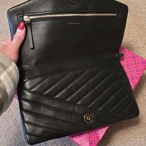 Elevate your style with the Tory Burch black quilted leather clutch. Perfect for any occasion, this elegant bag combines luxury and functionality.