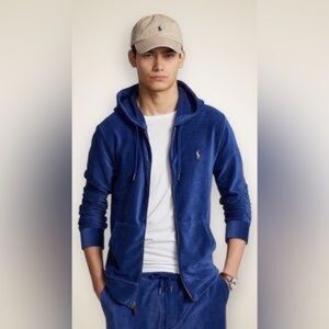 Pre-owned and in good shape. Polo Ralph Lauren full-zip hoodie is made from a knit interpretation of classic corduroy that includes extra stretch
