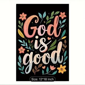 Brighten your garden with this colorful 'God is Good' flag. Double -Sided Featuring vibrant shades of orange, green, and white, it's perfect for adding a touch of inspiration to your outdoor decor.