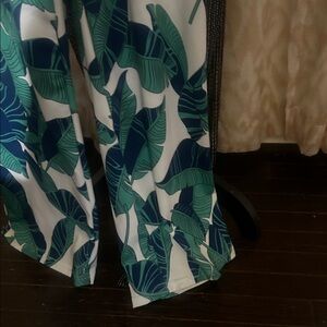 Embrace a tropical vibe with this stunning green leaf print maxi jumpsuit . Perfect for any occasion, this jumpsuit offers a blend of style and comfort.