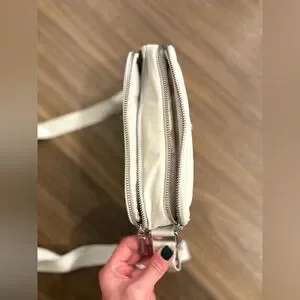 Lululemon cream crossbody bag with double zipper closure. Interior and exterior pocket slits. Perfect for daily use, athletics, travel, etc.