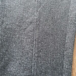 Laura dark gray slim leg pants in size 6. Features include front and back pleats, a zip fly with button closure, and two vertical front pockets. The fabric has some stretch. There is some pilling in the fabric; please see pictures for details.