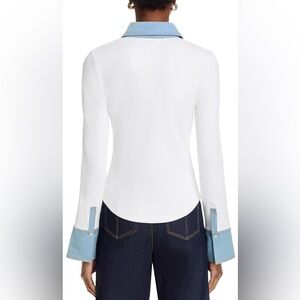 Cinq a Sept Jaden Denim Trim Top in White/Light Wash