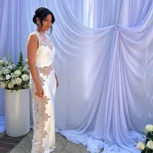 Elegant cream dress with intricate lace detailing. Perfect for weddings.