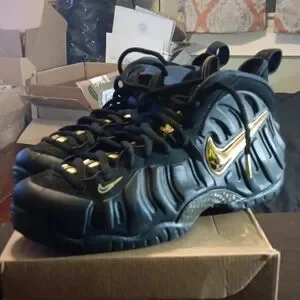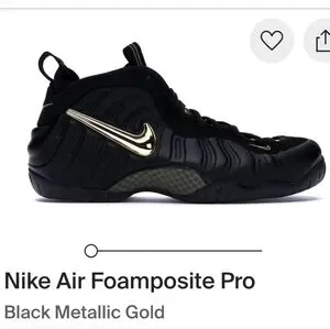 Sleek Nike Air Foamposite Pro (2018) Black Metallic Gold sneakers in black with striking gold details. Ideal for a standout style. These sneakers are stupid clean. Men's 9 Women's 10.5