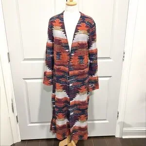 Lucky Brand Aztec Southwestern Open-Front Longline Duster – Size Medium