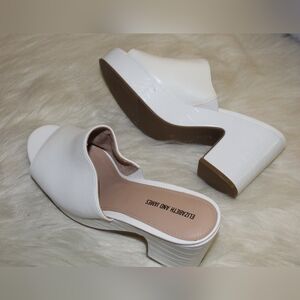 Elizabeth & James Chic White Faux Leather Open Toe Platform Clogs Mules Heels