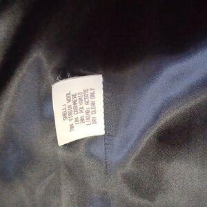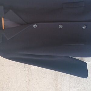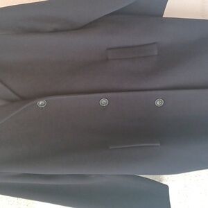 10 Kristen Blake Studio Collection maxi overcoat, virgin wool and cashmere blend, midnight blue, notched lapel, 3 button closure, rich blue acetate satin lining, 2 pockets, long-sleeved. measurements can be found in the photos. excellent pre-owned condition.