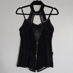 pairs well with belts and corsets! the halter neck portion is removable with snaps, and the zipper is functional! ozzon makes visual kei and steampunk designs that play well with other Japanese brands!