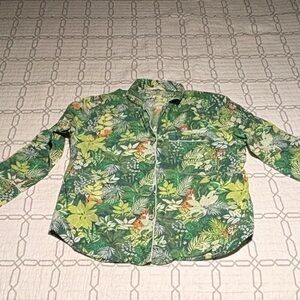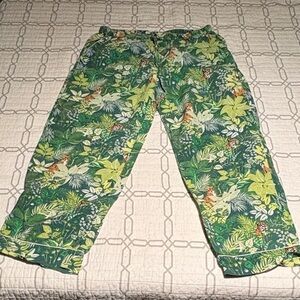 These tropical green pajamas are perfect for a cozy night's sleep. Featuring a vibrant jungle print, they offer comfort and style.