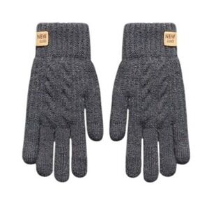 Unisex Thermal Warm Thick Fleece Lined Touchscreen Gray Knit Gloves NEW Winter