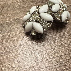 These elegant clip-on earrings feature a stunning combination of white and silver tones, perfect for adding a touch of sophistication to any outfit.