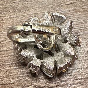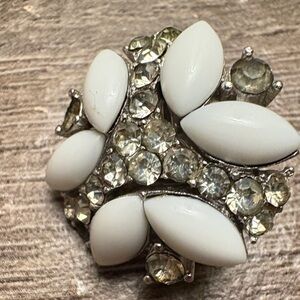 Trifari Vintage Milk Glass and Rhinestone Silver Clip-On Earrings