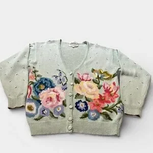 Spring, Floral Cardigan, Cottagecore, Feminine, Dainty, Vintage Cardigan, Grannycore, Easter