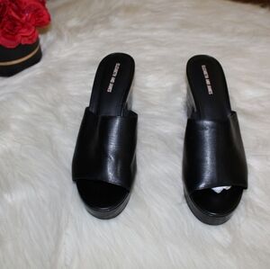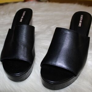 Elizabeth & James Chic Black Faux Leather Open Toe Platform Clogs Mules Heels