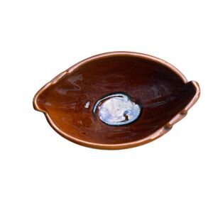 This original mid-century modern Frankoma planter was crafted in the USA from brown ceramic. This vintage piece from the mid-20th century features a distinctive swoosh detail. It measures 4 inches tall and 6 inches across.