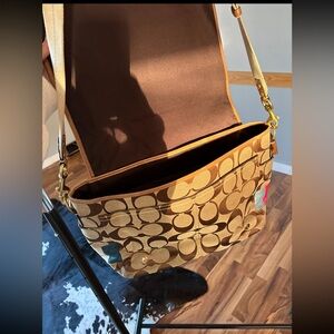 Authentic Coach Signature Canvas Crossbody Diaper Bag. Designed for on the go parents, featuring a durable, easy to clean interior and numerous pockets for organization. This is a vintage style discontinued bag that’s no longer sold on their website.