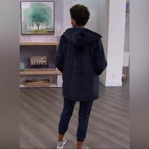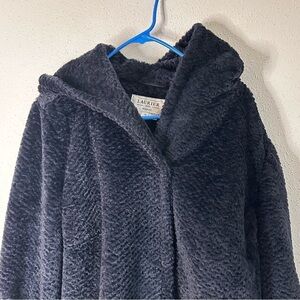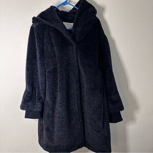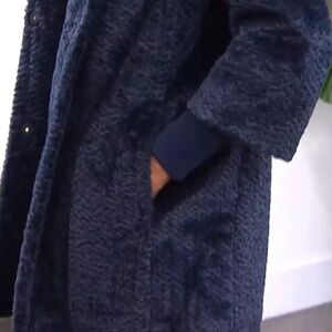 LAURIER FAUX FUR HOODED TEDDY JACKET COAT STORM SLEEVES NAVY BLUE SZ 1X