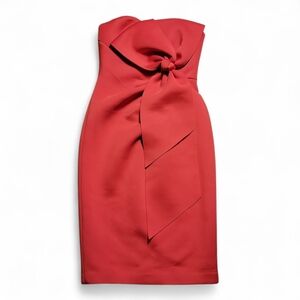 NWT $398 BADGLEY MISCHKA Strapless Bow Front Bodycon Scuba Midi Dress Red US 8