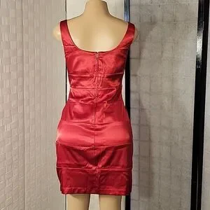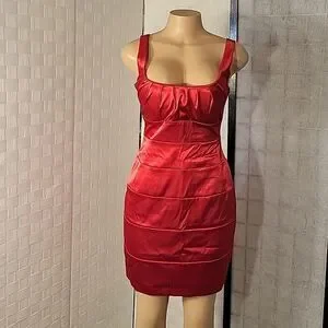 BISOU BISOU SQUARE NECKLINE SLEEVELESS PENCIL DRESS SIZE 8 COLOR RED ZIPPER BACK CLOSURE FASTENING BODYCON TRETCH MADE WITH 97%POLYESTER 3%SPANDEX LINING/FORRO 100%POLYESTER EXCLUSIVE OF TRIM THIS ITEMS IS PRE-OWNED EXCELLENT CONDITION YOU MIGHT MISTAKE FOR NEW CHECK THE PICTURES(FYI THE FIRST PICTURES IS JUST A MODEL TO SHOW WHAT THE DRESS LOOK ON CHECK THE PICTURES)