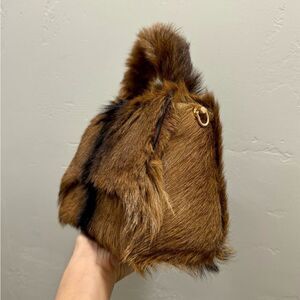 One of a kind! Very unique leather satchel bag. Handmade from real hair on goat hide leather. Use in multiple ways, includes 1 chain & 1 leather strap for matching different outfits.