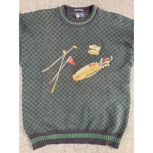 Vinage GANT Sweater Mens L Green Golf Embroidered Crewneck Knit Chunky Preppy