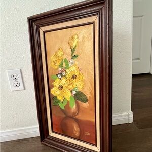 Vintage Original Oil Painting of Yellow Flowers In Vase by Andy 15/26 Framed