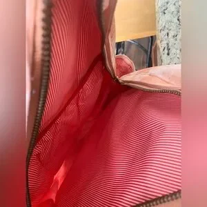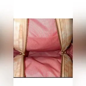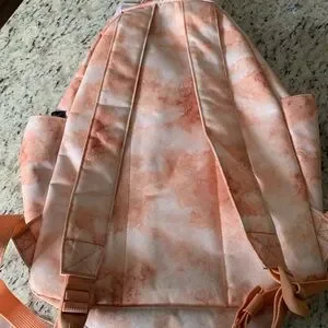 Herschel orange and white tie dye backpack with 2 handles on top. Red and white striped interior. All Zippers are functional. Gently used.