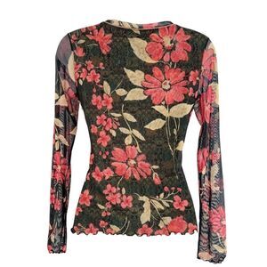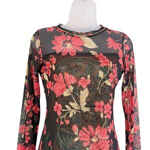 Anac by Kimi Size Medium Black Red Floral Sheer Top Artsy Fitted Romantic
