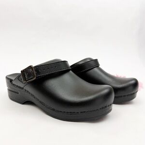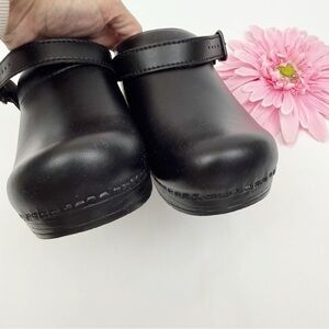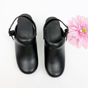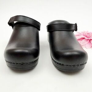 EUC Dansko Ingrid Oiled Leather Clogs Slingback Adjustable Black.