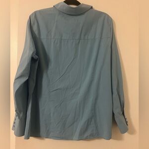 Elegant Talbots button down in sky blue. Perfect for versatile wear. Soft and chic.