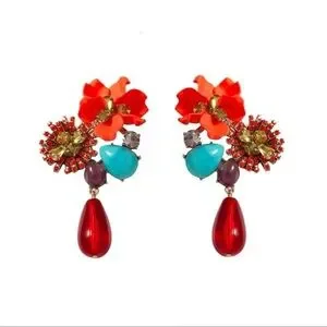 Floral Orange Gemstone Drop Earrings