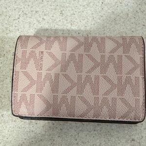 Elegant blush wallet with iconic MK pattern. Features gold-tone logo detail, space for coins and bills!