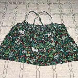 Floral Green Crop Top with Unicorn Print