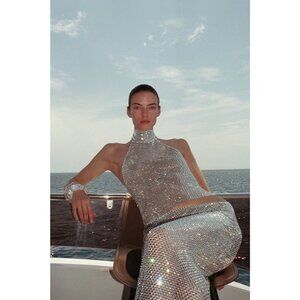 This exquisite sheer crystal-embellished maxi skirt combines elegance and sophistication for a stunning evening look. The low waist design enhance its modern appeal, while the shimmering crystals add a touch of glamour. Ideal for upscale events, this piece ensures you make a lasting impression.