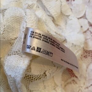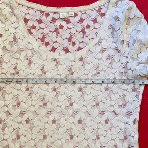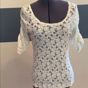 This is a beautiful stretchy lace top completely sheer so you could wear a tank top underneath you can dress it up dress it down. This would be super cute underneath a blazer or by itself perfect for summer very comfortable and breathable. Size medium.