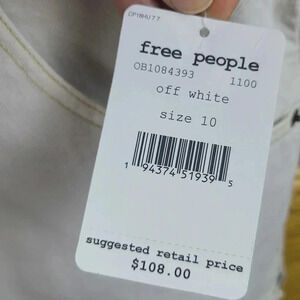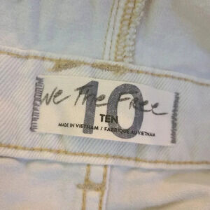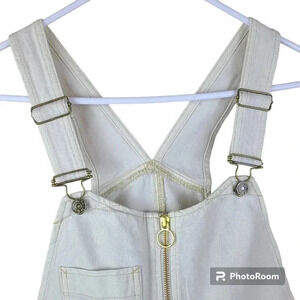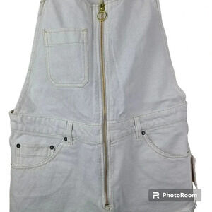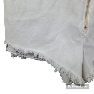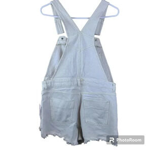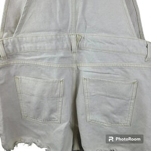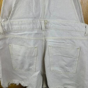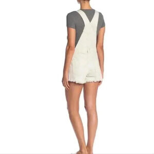 Free People cream colored sun-kissed denim short overalls with fringe leg size10
