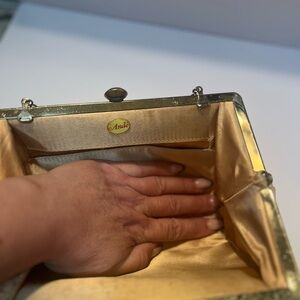 Gold color purse with peach color lining