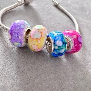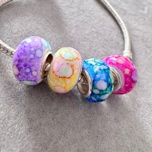 Set of 4 Colorful Abstract Pattern Bead Charms fits PANDORA