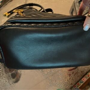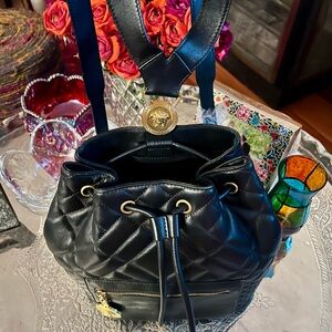 Iconic black leather Versace stunning chic black quilted bag/backpack. Gold hardware and drawstring closure with luxurious soft elegant leather.