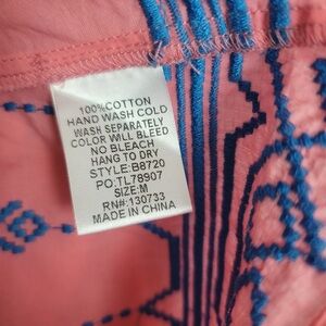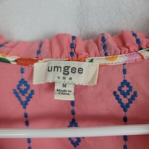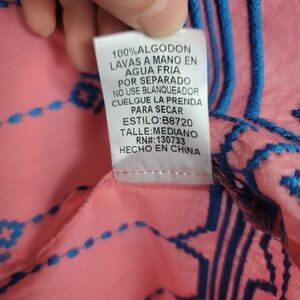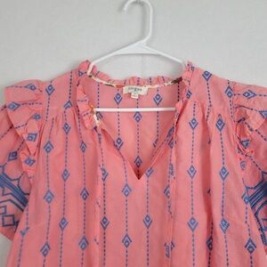 Umgee Coral and Navy V-Neck BOHO Blouse Size Medium