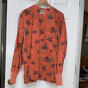 Uniform Advantage Orange Leaf Pattern Scrub Jacket